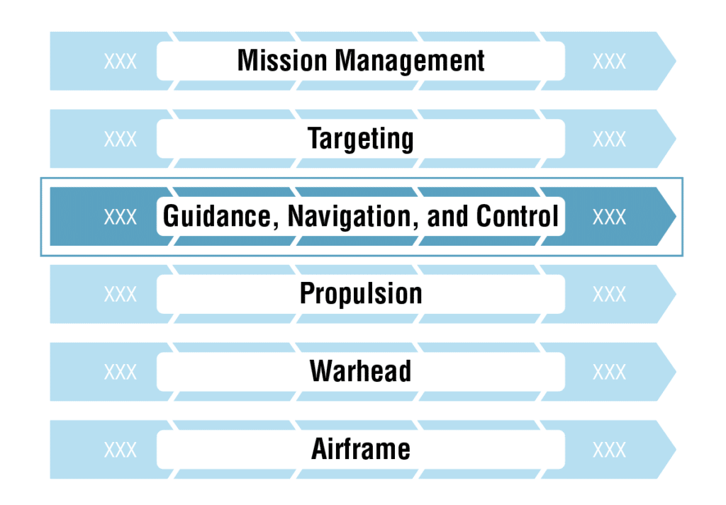 As with the missile system subsystems, the subsystem components reflect a functional decomposition of the subsystem’s operational capabilities. In the case of the GNC subsystem, those capabilities include: