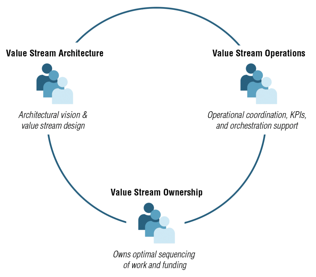 Value Stream Ownership is typically adopted by the System Engineering role, as they have deep solution execution experience and an understanding of the problem space. They are often supported by other technical experts who understand their detailed domains. Some of the responsibilities include being accountable for optimal execution of a value stream (i.e., the delivery of high-quality solutions in the shortest amount of time) and facilitating the management of the funding.