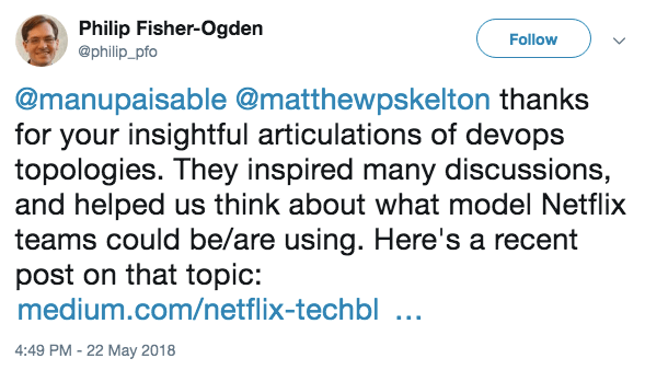 For instance, here is Philip Fisher-Ogden, Director of Engineering at Netflix describing how the topologies patterns have helped Netflix: