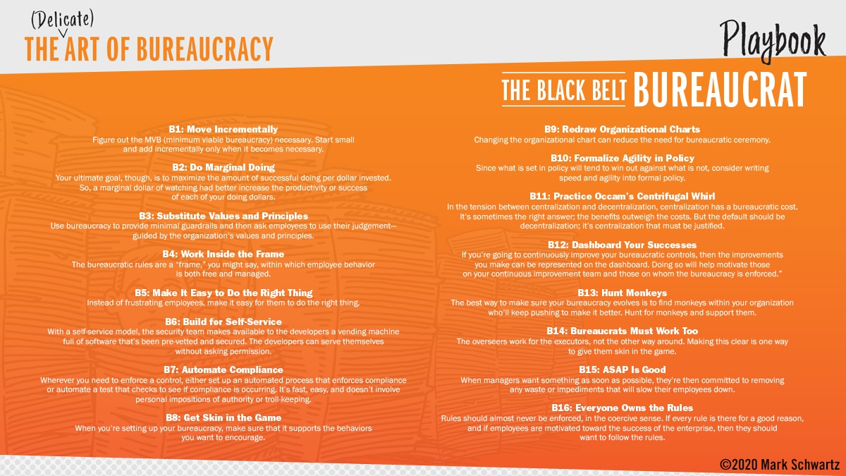 Note: This post is an abridged adaptation from Mark Schwartz’s The (Delicate) Art of Bureaucracy. Get the book to get the full playbook.
