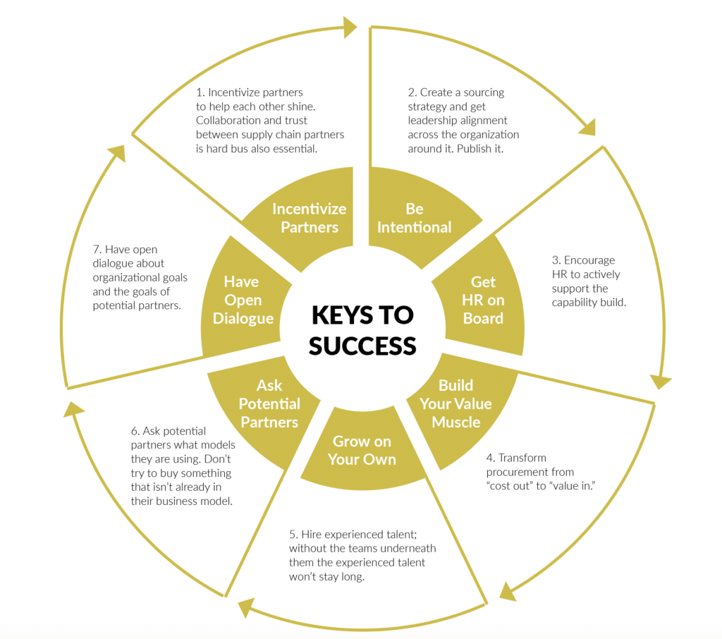 • As the number of suppliers, or partners, increases, look at how the buyer can incentivize them to help each other shine. Collaboration and trust between supply chain partners is hard, but also essential.